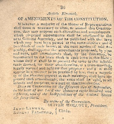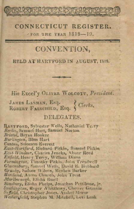1819 "Connecticut Register and United States Calendar" Connecticut Constitutional Convention, Vote by Towns and New Constitution