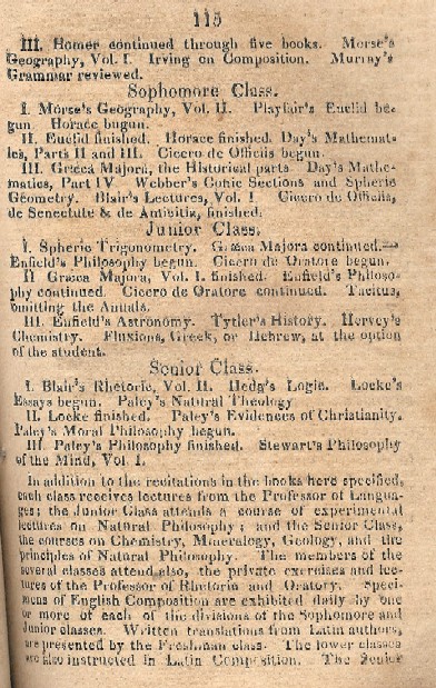 This small 169 page "Connecticut Register and United States Calendar for the Year of Our Lord 1819" published in late 1818 contains the new Connecticut Constitution, the delegates to the Constitutional Convention and the vote on the proposed constitution by the freeman of the state, listed by town. It is a very early publication of the constitution which for the first time separated church and state in Connecticut, provided a bill of rights, and separated the legislative, executive and judicial functions of state government. It is a rare piece of historical memorabilia that is packed with other period information about Connecticut, such as listing every doctor and lawyer in the state and every college in the Northeast. There is a plethora of information on Yale College which was the state supported school in 1818 and the Register contains even the course of study as shown below. Tuition, room and board was estimated at $180 to $220 per year.