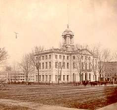 In the print the Old State House looks different than it does today because it was painted white to look like marble during the renovation in 1827 which added the cupola on top. Below is a picture of the Old State House as it looked in the 1860s, which is consistent with the 1861 print.