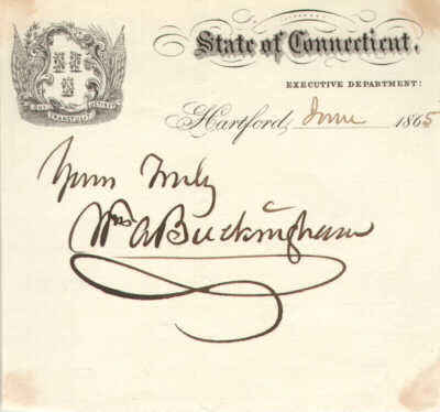 1865 Signature of Connecticut Civil War Governor William A. Buckingham on Executive Department Engraved Stationary