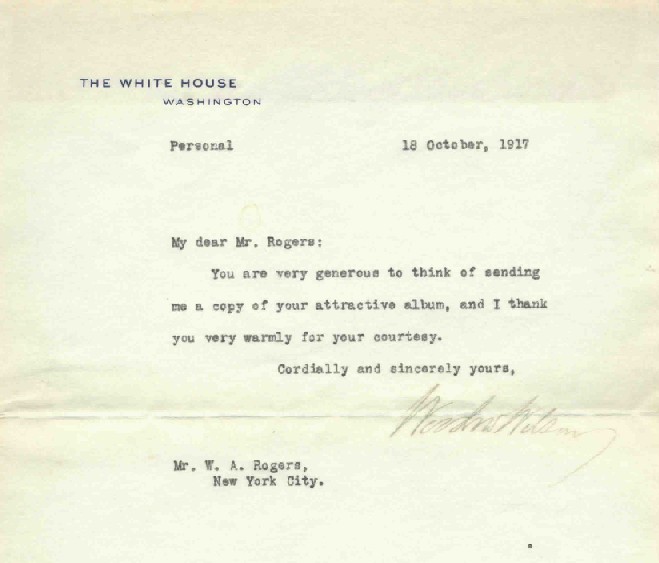 President Woodrow Wilson White House Letter To Noted Political Cartoonist W. A Rogers Framed 1917 War Date Letter With Wilson Portrait Concerns Album of Anti-German Editorial Cartoons
