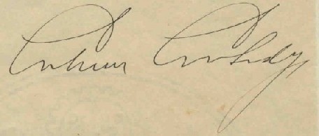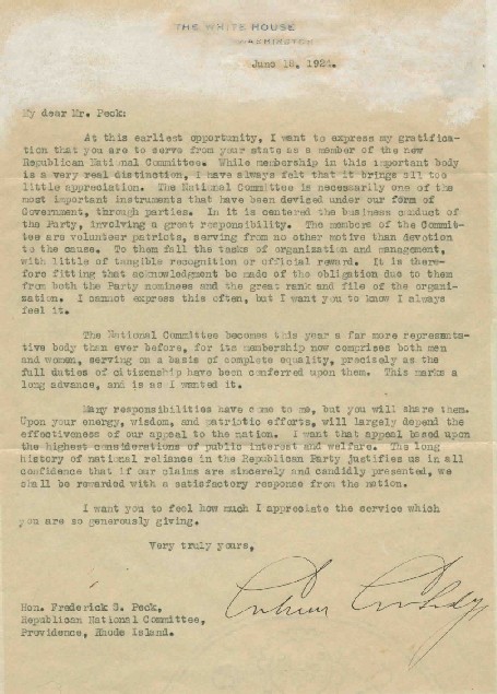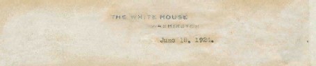 Coolidge's signature on letter with portion of Presidential Seal watermark visible