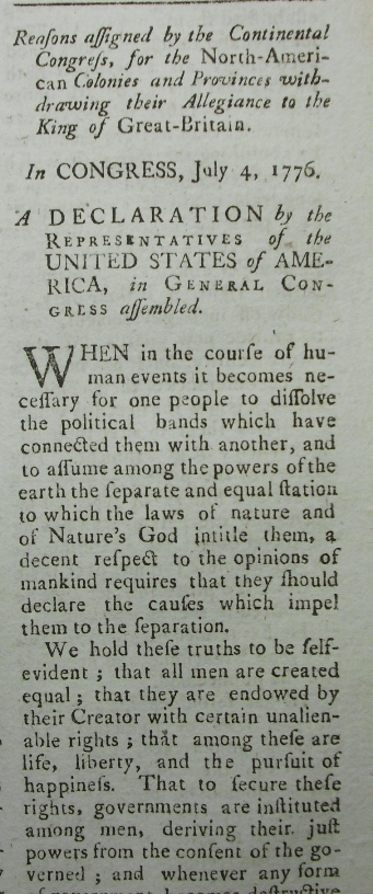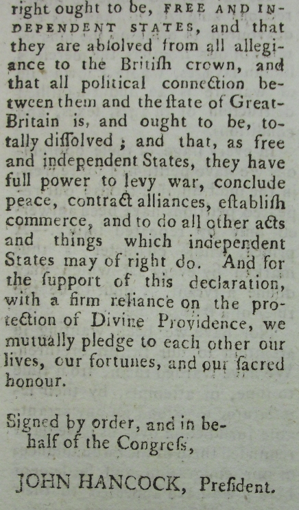Below is the start and end of the Declaration of Independence which is included in its entirety in this book. Also included in the book is an early publication of the Articles of Confederation which were approved by the Continental Congress in October 1776.