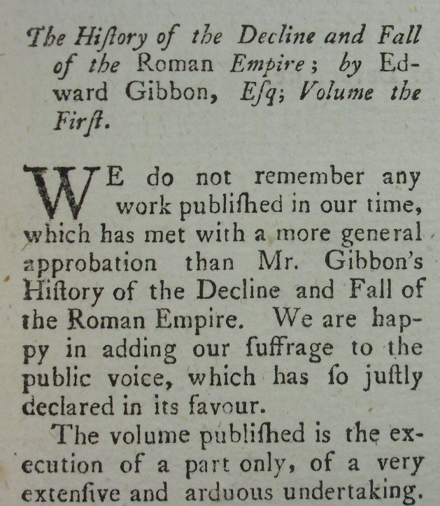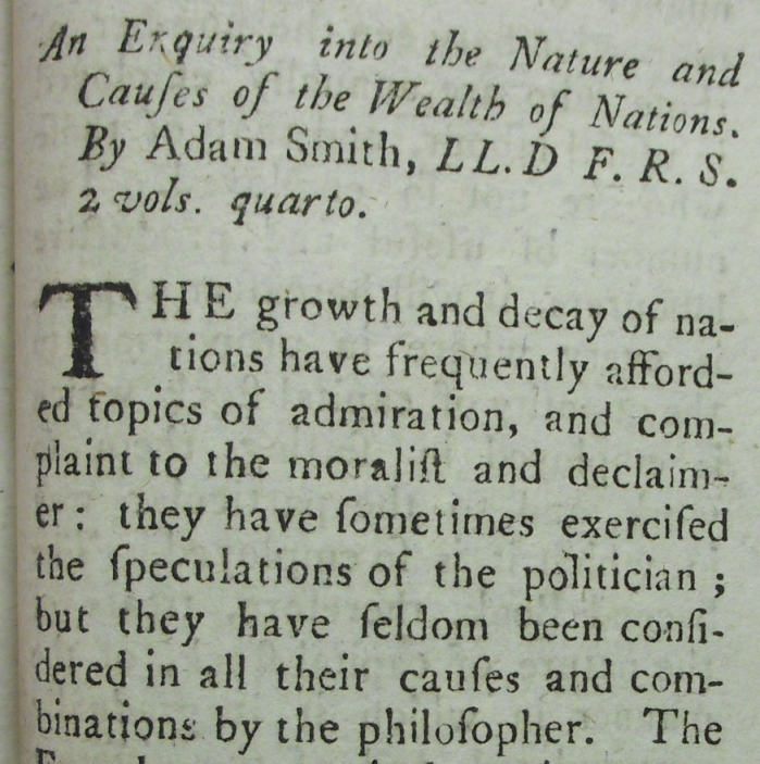 1776, the first volumes of Gibbon's history of the Roman Empire and Adam Smith's
