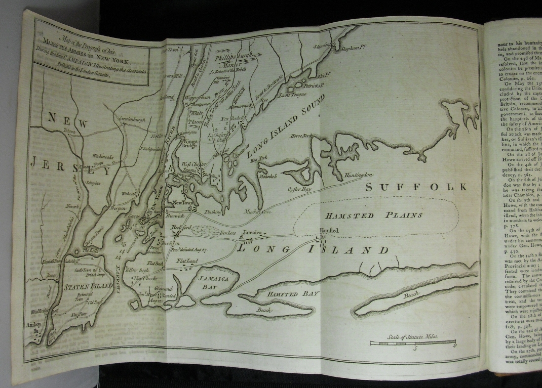 Below is the fold-out map of New York and New Jersey showing "the Progress of his Majesty's Armies"