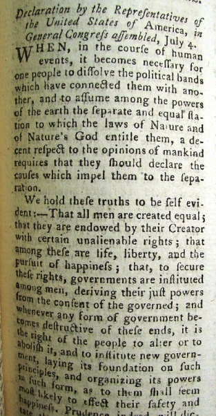 patterned it. Below is the start and end of the text of the Declaration of Independence published in August 1776
