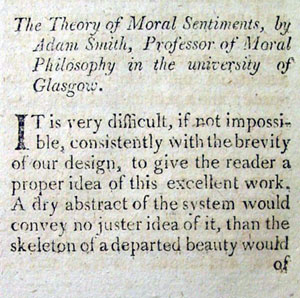 capitalism, Adam Smith. Here Burke reviews "The Theory of Moral Sentiments," by