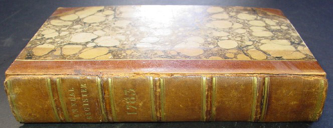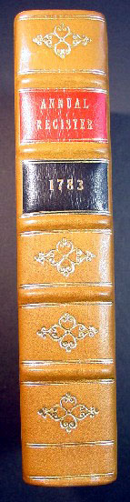 This is a first edition of the 1783 Annual Register in a fine full leather binding executed by Green Dragon Bindery. Price: SOLD