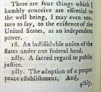 With such strong views on the need for a more powerful federal government it was not hard to convince George Washington to serve as President of the Constitutional Convention, which addresseed the central concerns he voiced in 1783. Below are excerpts from George Washington's two works in the 1783 Annual Register and the full texts are available here.