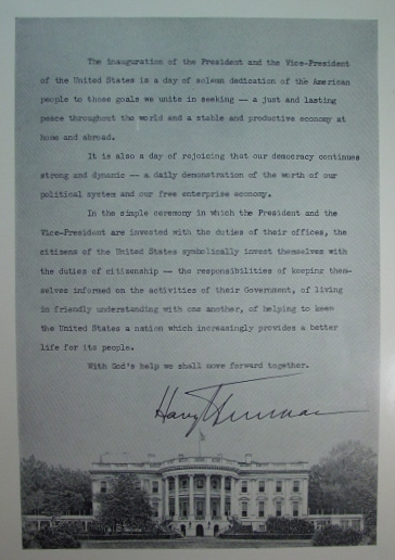 Truman was a history buff and his inaugural program has lots of history on past Presidential inaugurations.