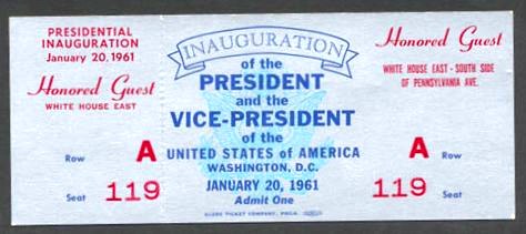 1961 Honored Guest Inauguration Ticket Choice Seating at White House for Inaugural Parade