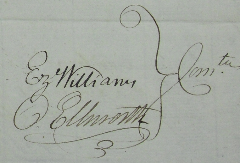This historic document is on 8.5 by 5.5 inch laid and watermarked paper drafted and signed by Oliver Ellsworth one of the important Founders of the American Republic. This document is clean and complete with nice signatures by both Ellsworth and Ezekiel Williams. The 1776 document was written and signed on June 5, 1776, two days before Richard Henry Lee's resolution urging the Continental Congress to declare independence and a month before Congress adopts the Declaration drafted by Thomas Jefferson, Benjamin Franklin and the rest of the Declaration drafting. The Ellsworth document authorizes the payment of 236 pounds, 11 shillings to Williams for "Salt Petre by him manufactured in & sold to this Colony." Saltpeter (potassium nitrate) was a critical component for making gunpowder, which was in high demand by the Continental Army. The book "Record of Service of Connecticut Men in the War of the Revolution" on p. 29 in a section entitled "The Ticonderoga Enterprise" notes that Ezekiel Williams who signed the document with Ellsworth was one of the originators and financers of the scheme to take the guns at Fort Ticonderoga to use to defend Boston. Williams also was Deputy Commissioner of Prisoners for Connecticut during the Revolutionary War and a member with Ellsworth of the Connecticut committee which authorized all Revolutionary War expenditures, which is the reason for his signature on our document purchasing saltpeter.