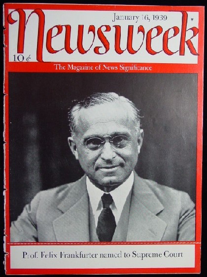 1939 Newsweek With Professor Felix Frankfurter on the Cover the Month He Was Nominated for Supreme Court and Was Sworn Into Office