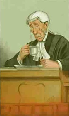This rather sorry looking specimen of manhood is Mr. Gainsford Bruce drawn by Sir. Leslie Ward (signed as "Spy") in 1892. Mr. Bruce was a lawyer and member of Parliament and later went on to become a judge (shown below in a later Vanity Fair print).