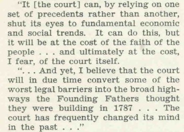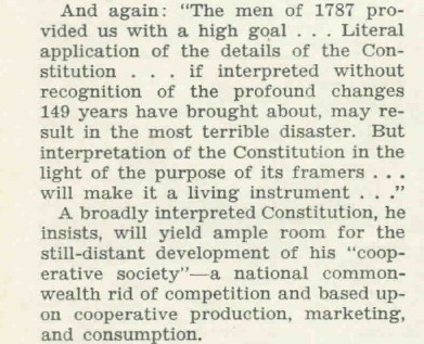 Wallace's language pictured above about converting "some of the worst legal barriers into the broad highways" and making the Constitution a "living instrument" was urging the Supreme Court to ignore the language of the Constitution. This language about the "living Constitution" continues to this day by politicians who want the court to substitute their judgment for that of the Constitution, Congress or states.