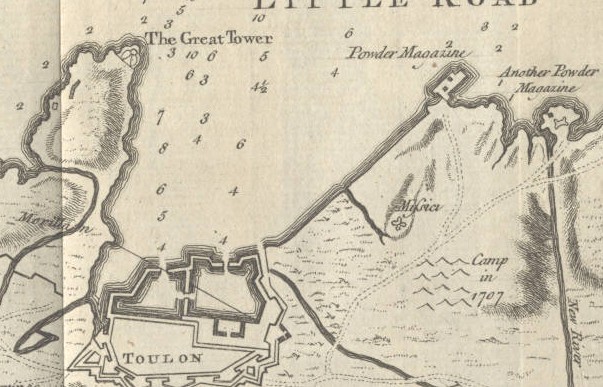 Below is a close-up of the Toulon harbor area where a young artillery captain in 1793 during the French Revolution made his reputation and began his meteoric rise to Emperor of France.