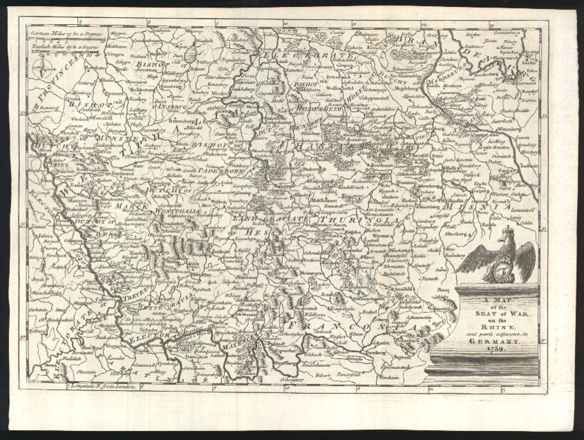 "A Map of the Seat of War on the Rhine, and Part's Adjacent, in Germany, 1759"