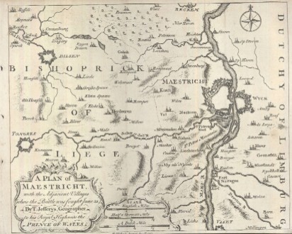 "A Plan of Maestricht, with the Adjacent Villages, where the Battle was Fought June 21. By T. Jefferys, Geographer to His Royal Highness the Prince of Wales"