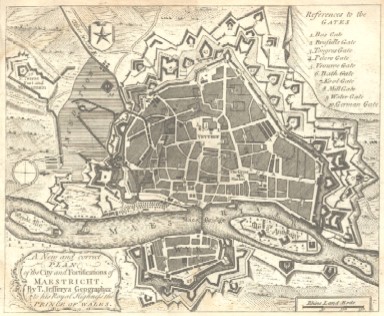 "A New and correct Plan of the City and Fortification of Maestrict. By T. Jefferys Geographer to his Royal Highness the Prince of Wales."