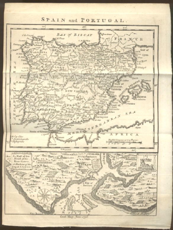 "Spain and Portugal [on sheet with] A Map of the Mouth of the River Tagus, or Harbour of the City of Lisbon"