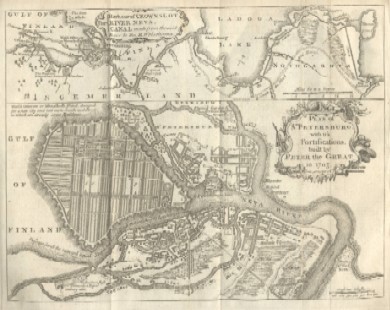 "Plan of St Petersburg; with it's Fortifications, Built by Peter the Great in 1703 [on sheet with] The Harbour of Crownslot River Neva, Canal Made from the Said River to the R. Wolschowa"