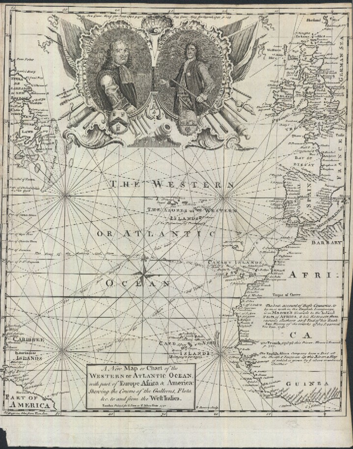 " A New Map or Chart of the Western or Atlantic Ocean, with Part of Europe Africa & America: Shewing the Course of the Galleons, Flota &c. to and from the West Indies."