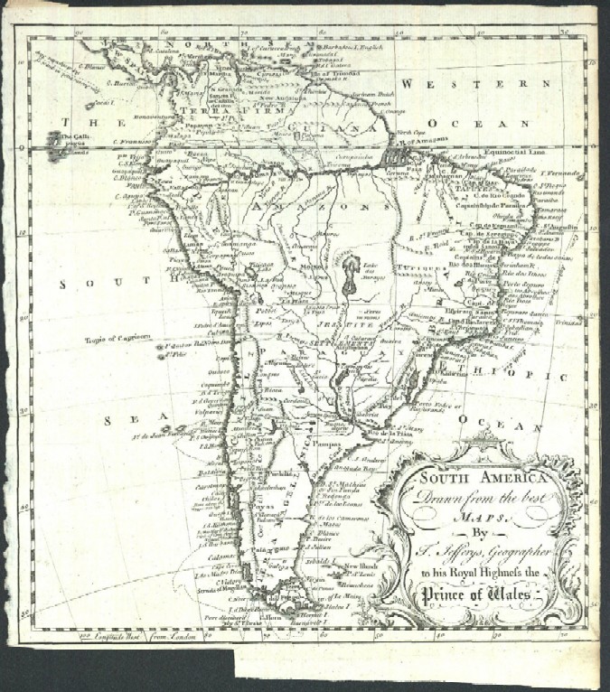 "South America Drawn from the Best Maps, by T. Jefferys, Geographer to His Royal Highness the Prince of Wales"