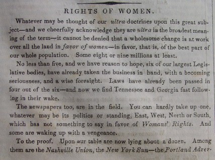 1843. There are articles on "The Rights of Women,"