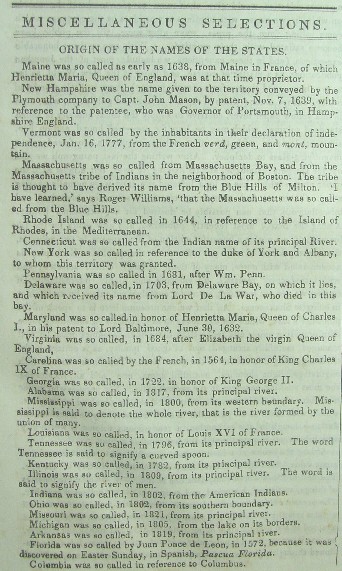 Uncle Sam, the origin of State names, Daniel Webster and Ben Franklin, reports