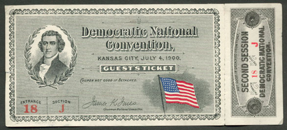 An integral party of American history is the political history of the nation, which generally encompasses the selection of candidates for national office and the major political issues that have divided the nation. The offerings here include political items such as buttons, ribbon badges, tickets, plates and prints. We have many of these items, especially national political convention and inaugural items, which will increasingly dominate this category as we complete stocking this online store. Some illustrative featured items are pictured below. Presidential Inauguration memorabilia can be found here Click on pictures or titles for information and prices William Howard Taft Political Ribbon 1900 Democratic National Convention Ticket With Thomas Jefferson Pictured Convention Selected William Jennings Bryan As Their Presidential Candidate Guide to 1933 Inauguration of Franklin D. Roosevelt and John Nance Garner President Nixon's Last Election Campaign Rally Broadside and Worker Pass 1872 Vanity Fair Print of President Ulysses S. Grant 1872 Vanity Fair Caricature of Abolitionist Senator Charles Sumner