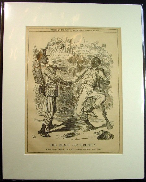 Punch Civil War Wood Engraved Cartoon John Tenniel's "THE BLACK CONSCRIPTION, When Black Meets