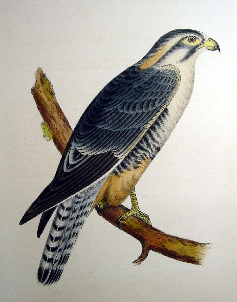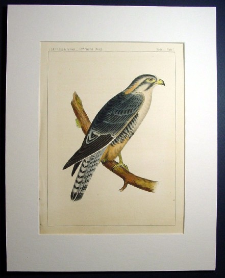 1850s Hand Colored Stone Lithographs of Birds of the West Alpomado Falcon