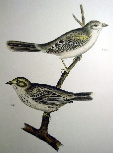 Birds of The West Antique Prints Drawn, Lithographed and Hand Colored In the 1850s These wonderful hand-colored lithographs of Western birds come from the late 1850s Reports of Explorations and Surveys to Ascertain the Most Practicable and Economical Route for a Railroad from the Mississippi River to the Pacific Ocean. Among the artists and ornithologists who accompanied the Pacific Railroad Expedition and produced these fine lithographs was John Cassin. Cassin identified, named and catalogued many of these illustrations. He was named curator of the Philadelphia Academy of Natural Sciences in 1842 and worked with John Bowen, the lithographer for John James Audubon, and after Bowen's death in 1856 he took over the lithography firm and published many of Audubon's books. His most famous works were Illustrations of the Birds of California, Texas, Oregon, British and Russian America (1853-56) so rare that it is only available in reprint, and Birds of North America (1860) These stone lithographs were hand-colored before publication in 1859 so every print is unique. Each of the prints measure about 8 3/4 x 11 1/4 inches and comes matted in Dove White with a black backing mat sized to a standard frame size of 11 x 14 inches so they can be quickly and inexpensively framed. Each comes protected in a clear plastic bag. The prints are modestly priced for such excellent 150 year old antique hand colored lithographs and the shipping charge on the matted prints is $5. The first two pictures below show how the prints look framed and matted. These are great prints that will look great on the walls of the finest homes. Click on the pictures or bird names below for larger pictures, prices and to purchase.