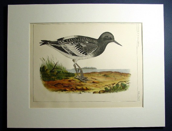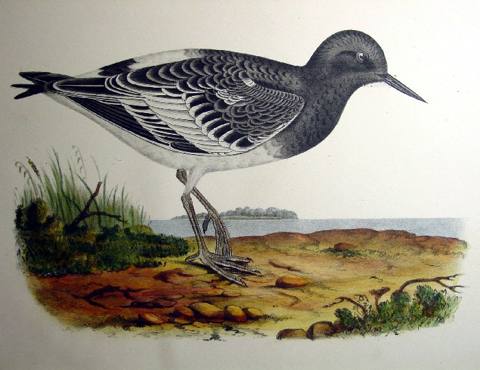 1850s Hand Colored Stone Lithographs of Birds of the West Black Turnstone