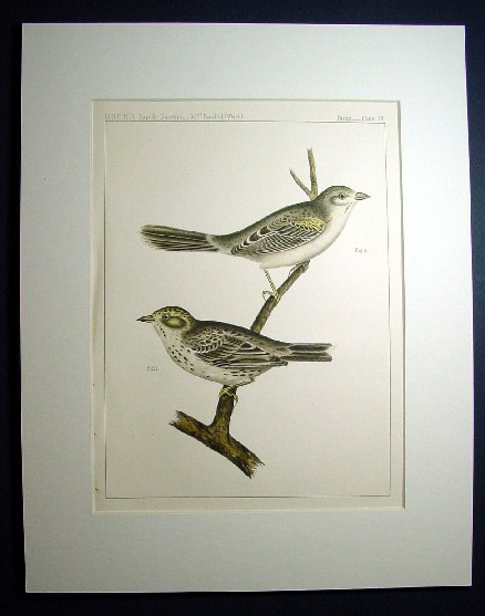 1850s Hand Colored Stone Lithographs of Birds of the West Cassin's Sparrow