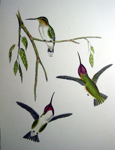 1850s Hand Colored Stone Lithographs of Birds of the West Costa's Hummingbird