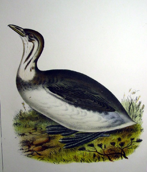 1850s Hand Colored Stone Lithographs of Birds of the West Pied-billed Grebe