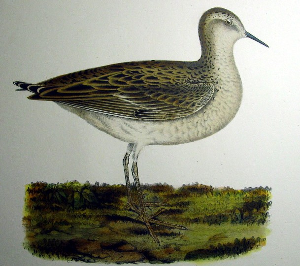1850s Hand Colored Stone Lithographs of Birds of the West Mottled Grass Plover
