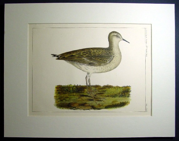 This work of artistry is the Mottled Grass Plover or actidurus naevius.. In the margin of the print it says "U.S.P.R.R. Exp. & Surveys --- 32nd Parallel (West)" and "Birds. --- Plate VI." An extensive description of this species is attached to the back of the backing mat included with this print and it states that it was first observed on the 32 parallel survey while "riding on the prairies near San Antonio," Texas. Below is the lithograph as it will come to you matted and in a protective clear plastic sleeve.