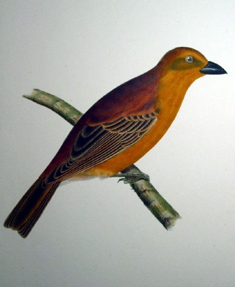 1850s Hand Colored Stone Lithographs of Birds of the West Hepatic Tanager