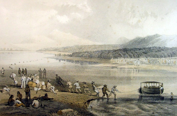 Three Original 1850s Native American Indian Prints "Rio Colorado Near The Mojave Villages" Three Views of the Colorado River Crossing Showing Methods of Transportation and Trading With Indians