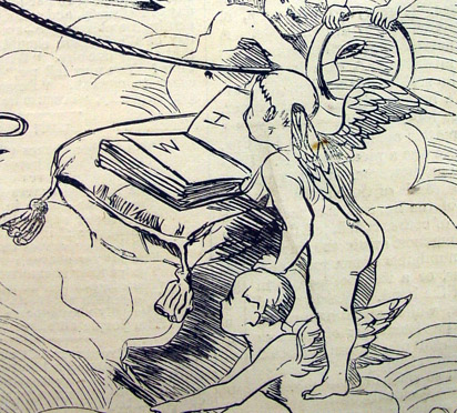 In this 1868 engraving Winslow Homer pictures lovers throughout the world celebrating Valentine's Day. Below is a detail of the print showing Homer signing his initials in the book of love, ironic given that he never married.