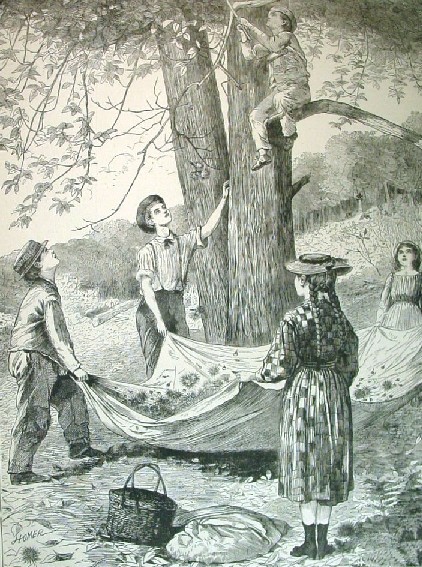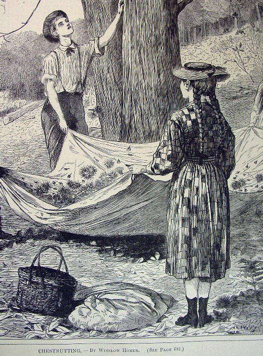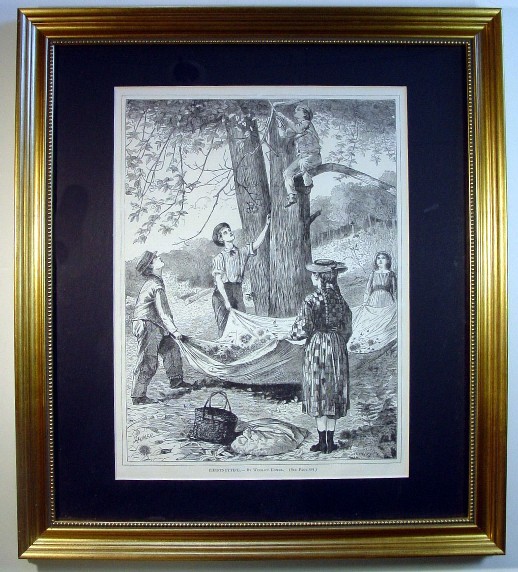 Winslow Homer Every Saturday Wood Engraving Matted and Framed "CHESTNUTTING"