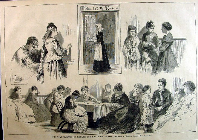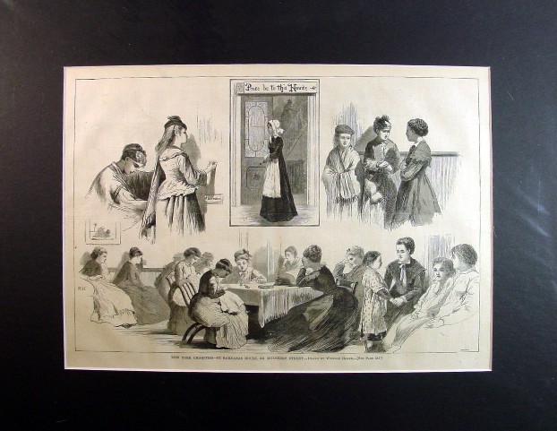 Winslow Homer 1874 Matted Wood Engraving "NEW YORK CHARITIES - ST. BARNABAS HOUSE, 304 MULBERRY STREET"