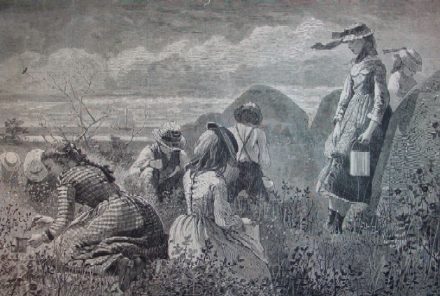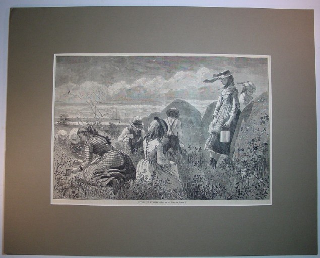 1874 Winslow Homer Wood Engraving "Gathering Berries"