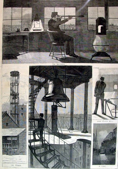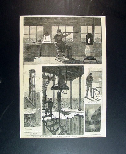 Winslow Homer 1874 Matted Wood Engraving "WATCH-TOWER CORNER OF SPRING AND VARICK STREETS, NEW YORK"