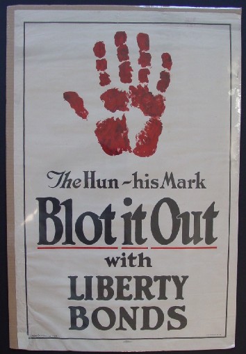 Bonds. It is one of the earliest uses of Hun in posters to describe German