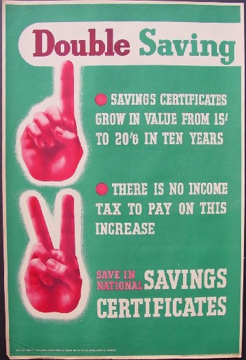 reddish hands signaling one and two, issued by National Savings Committee